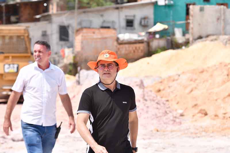 O prefeito de Manaus, David Almeida, fiscalizou, nesta quarta-feira, 21/9, a fase final das obras de contenção de uma área afetada por uma erosão de mais de 30 metros de profundidade na rua Félix, no bairro Cidade de Deus, na zona Norte da capital amazonense. Os serviços de revitalização, realizados pela Secretaria Municipal de Infraestrutura (Seminf), seguem em ritmo acelerado para entregar a área totalmente recuperada e segura aos moradores da comunidade.