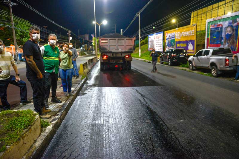 As obras de requalificação viária na avenida Rodrigo Otávio, bairro do Japiim, zona Sul, estão chegando a sua etapa final e são realizadas à noite para não agravar o trânsito no local. O prefeito de Manaus, Arthur Neto, aproveitou o início da madrugada desta quarta-feira, 9/12, para acompanhar o andamento da obra, que tem um total de cinco quilômetros de extensão, totalizando 10 quilômetros lineares de asfalto de qualidade nas duas pistas.