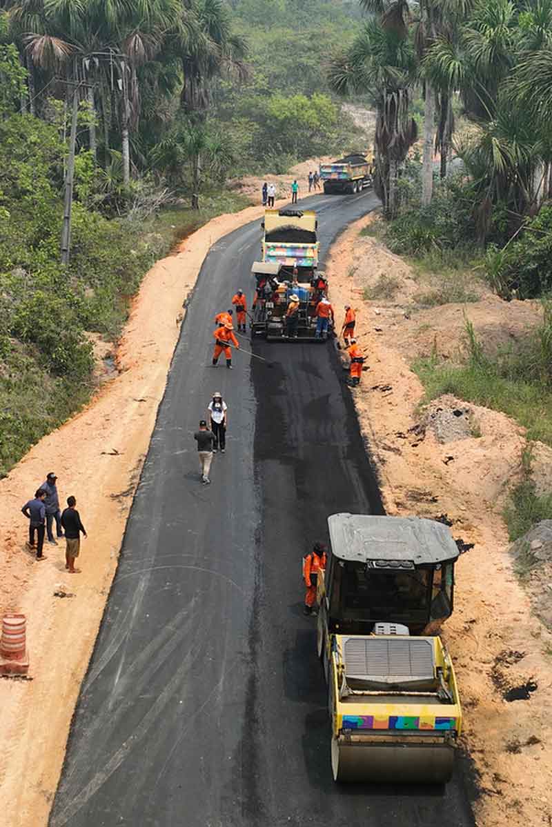 Por dia, desde que iniciaram o trabalho na última semana de agosto, as equipes despejaram aproximadamente 400 toneladas de asfalto. Os últimos 2 quilômetros do ramal recebem terraplanagem, imprimação, aplicação de massa e compactação do solo.