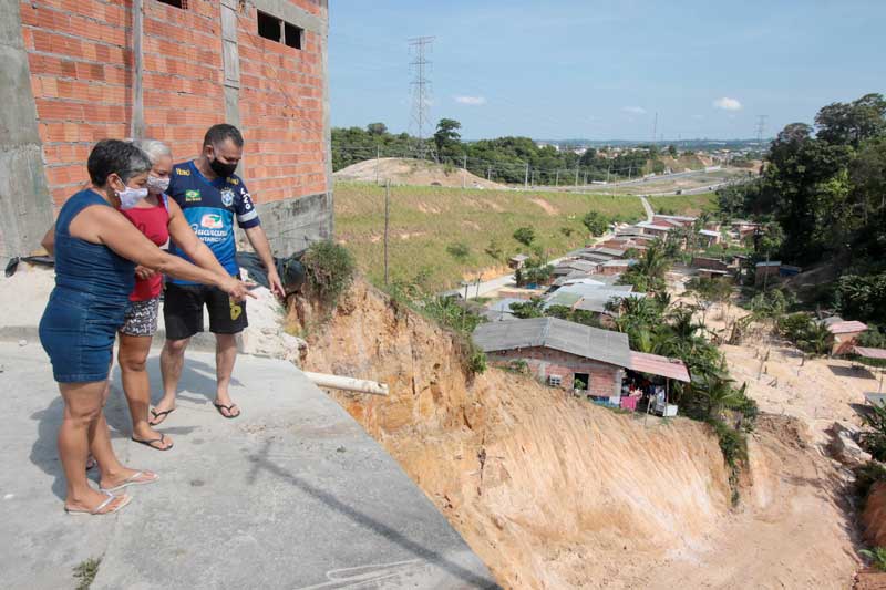 “O prefeito David Almeida esteve aqui ontem e já determinou que as equipes da Seminf, na figura do secretário municipal de Infraestrutura, Marcos Rotta, começassem a atuação. Ontem mesmo, as máquinas começaram a fazer a regularização dos taludes, que estavam desmoronando, para em seguida fazer o aterro”, afirmou Kelton.