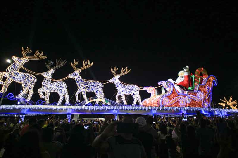 O Fundo Manaus Solidária (FMS) e a Secretaria Municipal de Educação (Semed), entregou, neste sábado, 19/11, mais uma etapa da 2ª edição do “Natal das Águas – Luz da Esperança”, no complexo turístico Ponta Negra, na zona Oeste. Dessa vez, o encanto ficou por conta do trenó, com 25 metros de comprimento e 15 metros de altura, e um grande Papai Noel.