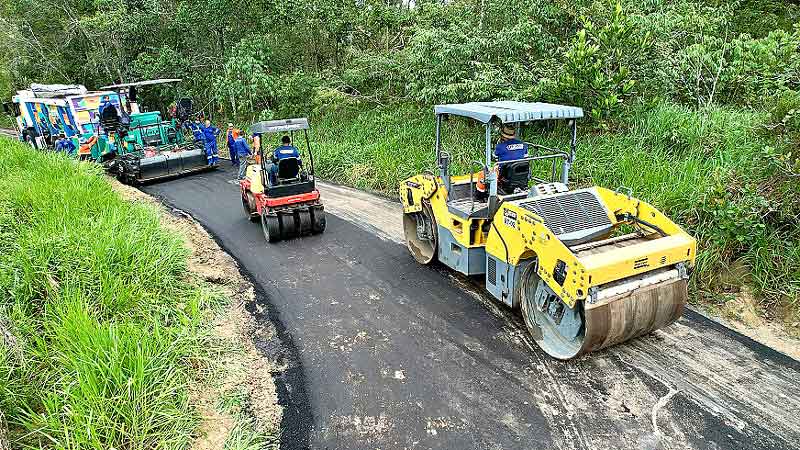 A pavimentação deve ser concluída até o mês de fevereiro. No trecho, as equipes do distrito realizaram terraplanagem e, agora, fazem a imprimação, aplicação de massa asfáltica e compactação do solo.