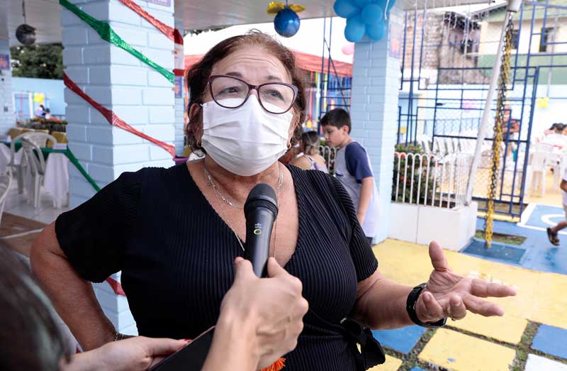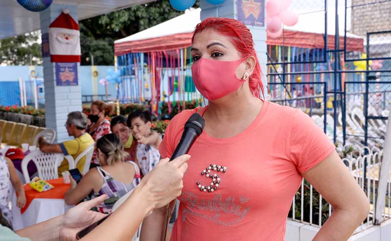 Edineuza Coelho é mãe de Sabrina Brito, 10 anos, atendida pelo Eamaar desde 2016, e destacou a felicidade em ver a festa acontecendo e a felicidade pelas crianças terem sido lembradas e por terem um Papai Noel só deles.