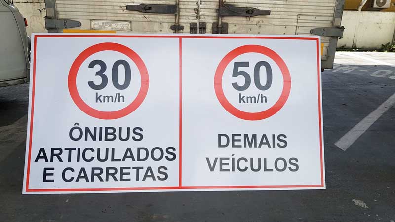 Para os ônibus articulados e carretas, a velocidade máxima estabelecida pelo órgão de trânsito é de 30 Km por hora. Para os demais veículos a velocidade máxima permitida é de até 50 Km por hora.