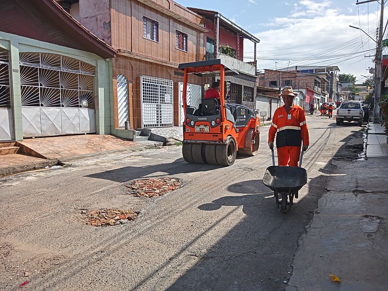 As equipes da Seminf trabalham com aproximadamente 50 toneladas de massa asfáltica e rolo compressor, para compactar, de forma precisa, o asfalto. As equipes atuam na recuperação da via, para receber o serviço de recapeamento do programa “Asfalta Manaus”, que visa recuperar 10 mil ruas na capital amazonense.
