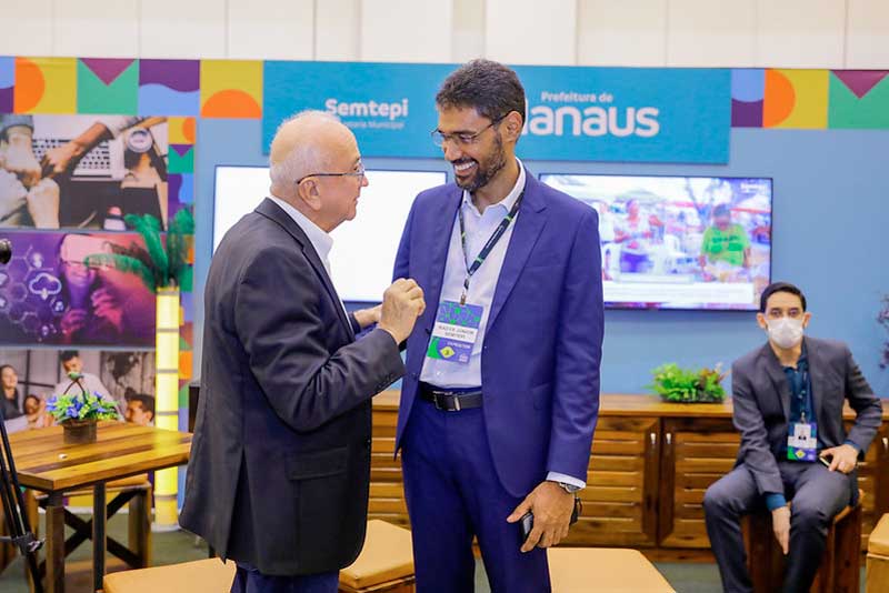 Fortalecendo o ecossistema de inovação e bioeconomia, a Prefeitura de Manaus, por meio da Secretaria Municipal de Trabalho, Empreendedorismo e Inovação (Semtepi), participou da abertura do evento internacional “Expo Amazônia Bio&Tic 2022”. A programação iniciou nesta quinta-feira, 30/6, e segue até dia 2/7, no Centro de Convenções Vasco Vasques, na zona Centro-Sul de Manaus. A expectativa é de que mais de 15 mil pessoas visitem o espaço durante os três dias de atividades.