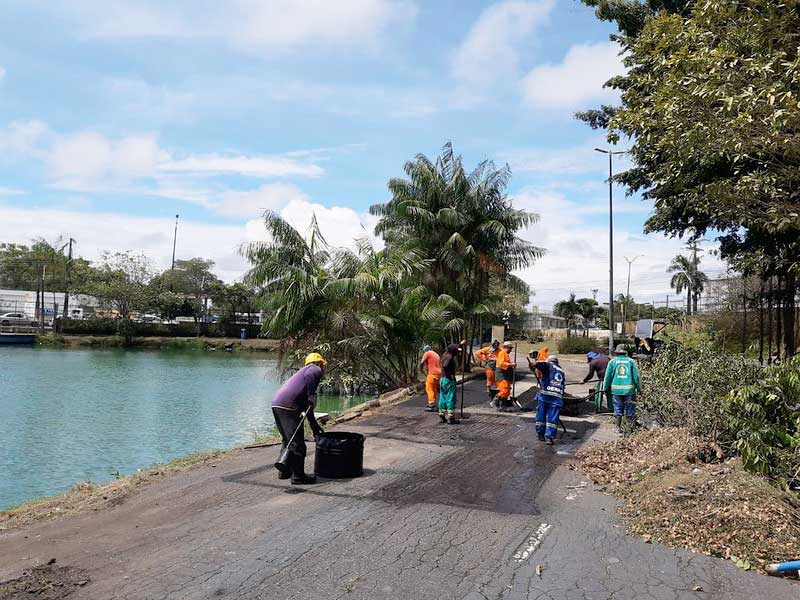 Os trabalhos para a reabertura dos parques municipais e unidades de conservação de Manaus continuam. Neste sábado, 8/5, equipes das secretarias municipais de Meio Ambiente e Sustentabilidade (Semmas) e de Infraestrutura (Seminf) intensificaram as ações de revitalização no parque Lagoa Japiim, na zona Sul de Manaus, o próximo a ser reaberto para a população, seguindo a determinação do prefeito David Almeida.