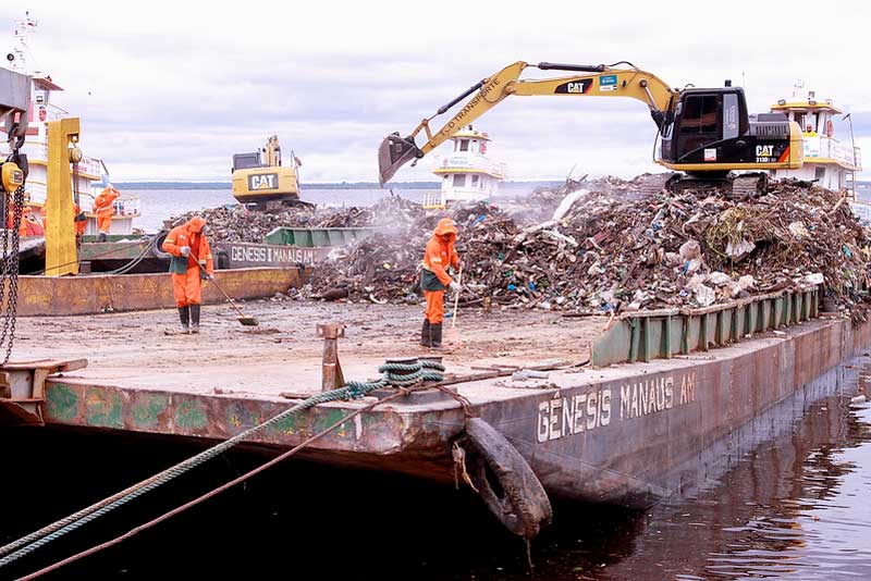 A Prefeitura de Manaus realiza, neste domingo, dia 16/1, a partir das 7h, o transbordo de 700 toneladas de resíduos retirados dos rios e igarapés da cidade nos últimos 30 dias.