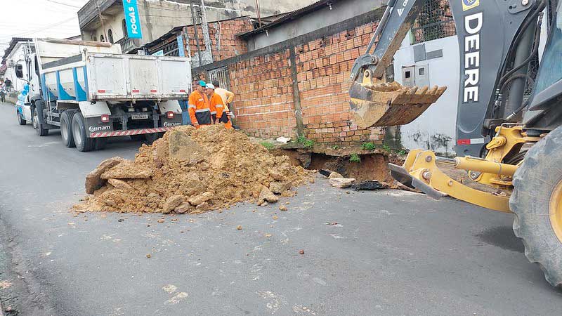 “A determinação do prefeito David Almeida e do secretário de Obras Renato Junior é que atuemos de modo emergencial em casos de rompimentos de redes de drenagem na cidade”, complementa Socorro.