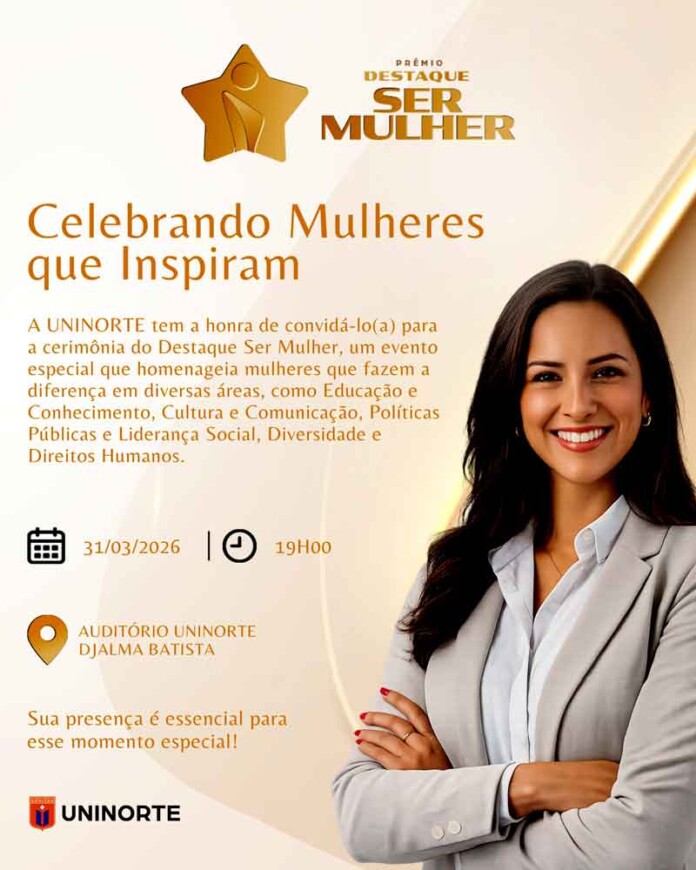 O auditório da UniNorte na Djalma Batista será o palco de uma celebração marcada por reconhecimento e representatividade nesta terça-feira 31/3. A partir das 18h a segunda edição do Prêmio “Ser Mulher – Destaque” homenageia mulheres que são referências em suas áreas de atuação. O evento busca valorizar trajetórias que simbolizam superação e transformação social no Amazonas.