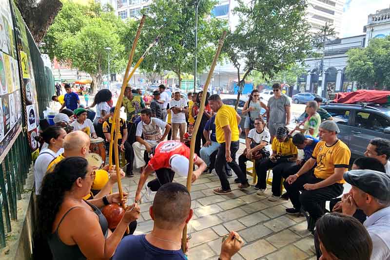 O mestre Canário, coordenador da Frente Unida Capoeira Tradicional do Amazonas, destaca a importância da capoeira como Patrimônio Cultural Imaterial do Estado e do Município de Manaus, ressaltando o compromisso de promover o acesso à cultura para a população.