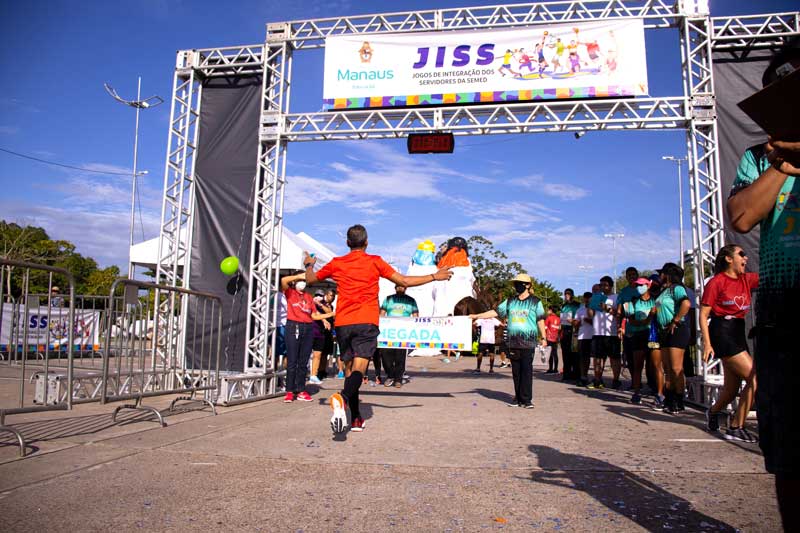 Com a participação de 1,2 mil servidores, sendo 325 na corrida e 901 na caminhada, a Prefeitura de Manaus, por meio da Secretaria Municipal de Educação (Semed), realizou o encerramento os Jogos de Integração dos Servidores (JISS), na manhã deste domingo, 5/12, no complexo turístico Ponta Negra, zona Oeste da cidade. Mesmo sob forte calor, os participantes completaram com muita alegria os 5 quilômetros de corrida e os 3 quilômetros de caminhada. Ao final das provas, todos receberam medalhas e os três primeiros colocados foram premiados, ainda, com troféus.