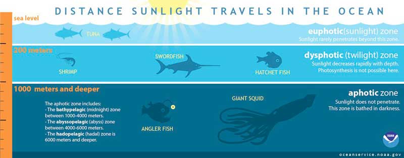 Os oceanos também costumam ser muito mais profundos do que os mares, com raras exceções. Um exemplo é o mar Mediterrâneo, que atinge mais de 5.000 metros de profundidade em sua parte mais funda. Ainda assim, nem se compara com a profundidade encontrada no Oceano Pacífico, responsável por abrigar uma das regiões mais profundas do mundo, que é a Fossa das Marianas — tão profunda (mais de 11 km) que o Monte Everest (quase 9 km de altura) poderia ser escondido por lá.