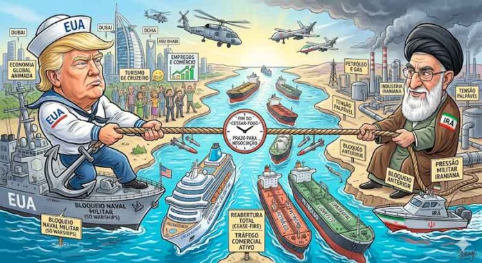 O presidente Donald Trump alertou que qualquer navio de ataque que tentar violar as regras será eliminado. A estratégia da Casa Branca é manter o fluxo de mercadorias e energia enquanto garante o controle total sobre as ameaças militares no entorno do Irã.
