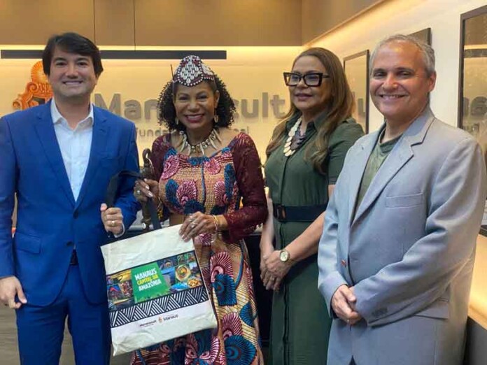 A Fundação Municipal de Cultura, Turismo e Eventos (ManausCult) recebeu, na manhã desta segunda-feira (1/12), a visita oficial da rainha Diambi Kabatusuila, líder do Reino de Luba Bakwa Luntu, na República Democrática do Congo. A presença da monarca faz parte de sua agenda diplomática no Brasil em 2025, focada em estreitar laços para cooperação internacional, sustentabilidade, empoderamento feminino e intercâmbio cultural.