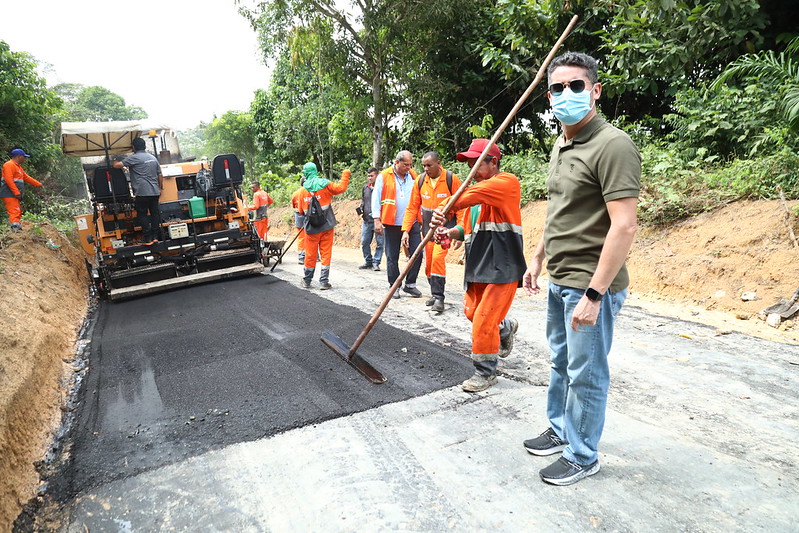 Durante a fiscalização, o chefe do Executivo municipal acompanhou a troca total da massa asfáltica da rua São Judas Tadeu, na comunidade São João, e conversou com a população sobre os serviços que serão realizados nos próximos dois anos pela Prefeitura de Manaus.