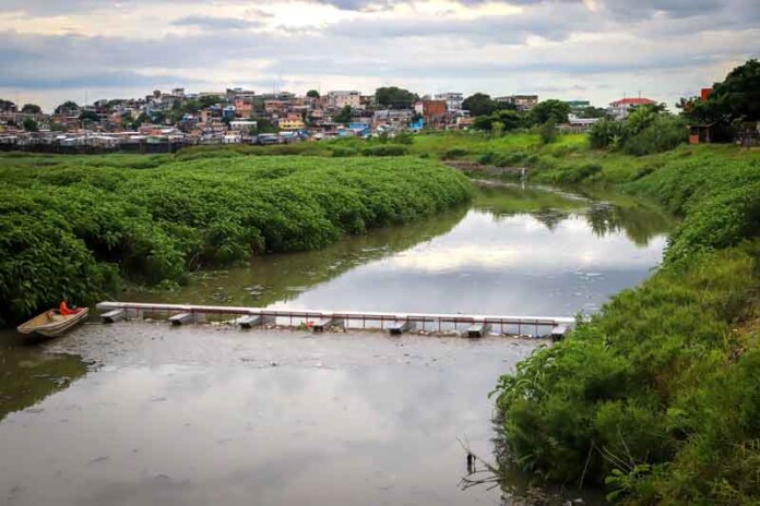 A preservação dos recursos hídricos na Amazônia ganhou um novo aliado estratégico nesta quinta-feira, 12 de fevereiro. A Prefeitura de Manaus, por meio da Secretaria Municipal de Limpeza Urbana (Semulsp), instalou a 14ª ecobarreira da capital no encontro entre os igarapés do 40 e do Mestre Chico, na zona Sul. A iniciativa amplia uma rede de proteção que já se consolidou como uma das principais barreiras físicas contra a poluição do rio Negro, interceptando o lixo descartado irregularmente antes que ele alcance o leito principal.
