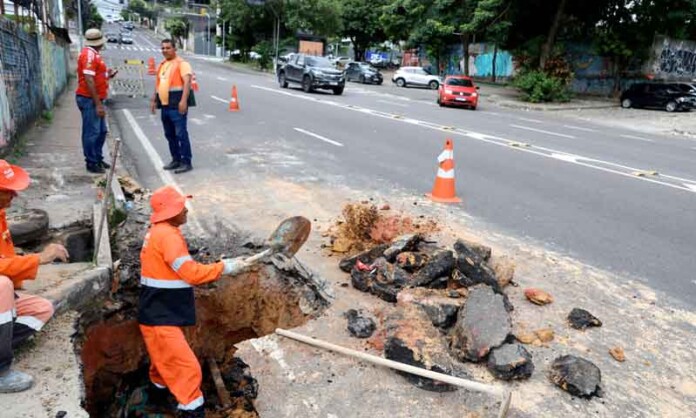 O episódio registrado neste sábado (11/04) na avenida Jornalista Umberto Calderaro Filho, no Adrianópolis, é um retrato fiel dos desafios cotidianos de Manaus. A abertura de uma cratera em uma das vias mais movimentadas da zona Centro-Sul, provocada pelo rompimento de uma rede de drenagem após vazamento de água, exigiu uma mobilização de guerra da Secretaria Municipal de Infraestrutura (SEMINF). Embora a agilidade na recuperação de 50 metros da rede seja louvável, o fato acende um alerta sobre a vida útil das galerias subterrâneas da capital.