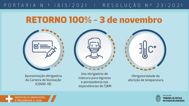 ⌛ O retorno integral das atividades presenciais do Tribunal de Justiça do Amazonas está previsto para o dia 3 de novembro de 2021.