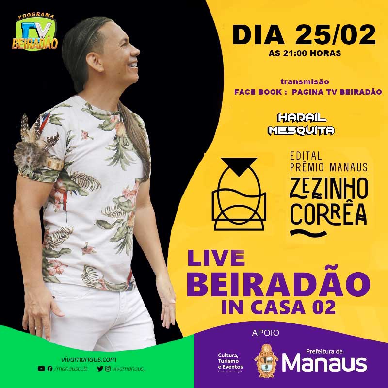O cantor e compositor amazonense Hadail Mesquita fará um show exclusivo, o Beiradão in Casa 02, que será transmitido para todo o Brasil por meio de sua página oficial no Facebook, a TV Beiradão, no dia 25 de fevereiro, às 21h. O evento promete mostrar para todo o país a batida que toca no interior do Amazonas, através da interpretação criativa do artista.