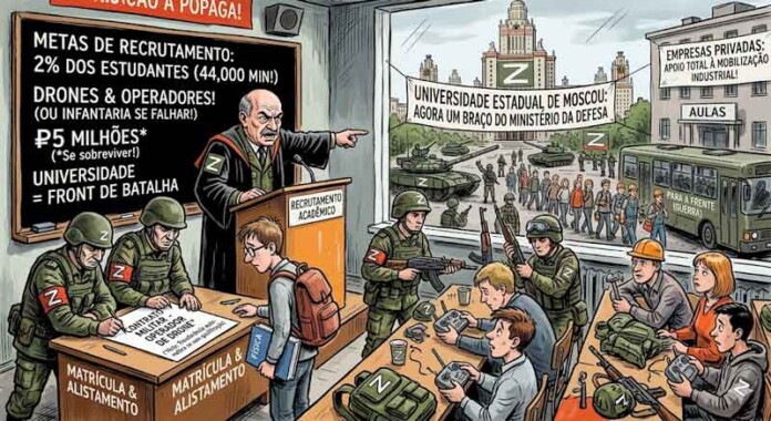 Relatórios recentes indicam que o Ministério da Ciência e do Ensino Superior da Federação Russa impôs metas rígidas para que reitores de grandes universidades recrutem estudantes para o serviço militar.