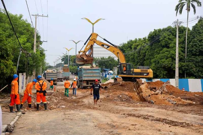 A Secretaria Municipal de Infraestrutura (Seminf) da Prefeitura de Manaus está progredindo na escavação do segmento desnivelado da avenida Mário Ypiranga Monteiro, localizada na zona Centro-Sul da capital. A equipe de mais de cem operários já escavou oito metros de profundidade para remover a antiga tubulação.
