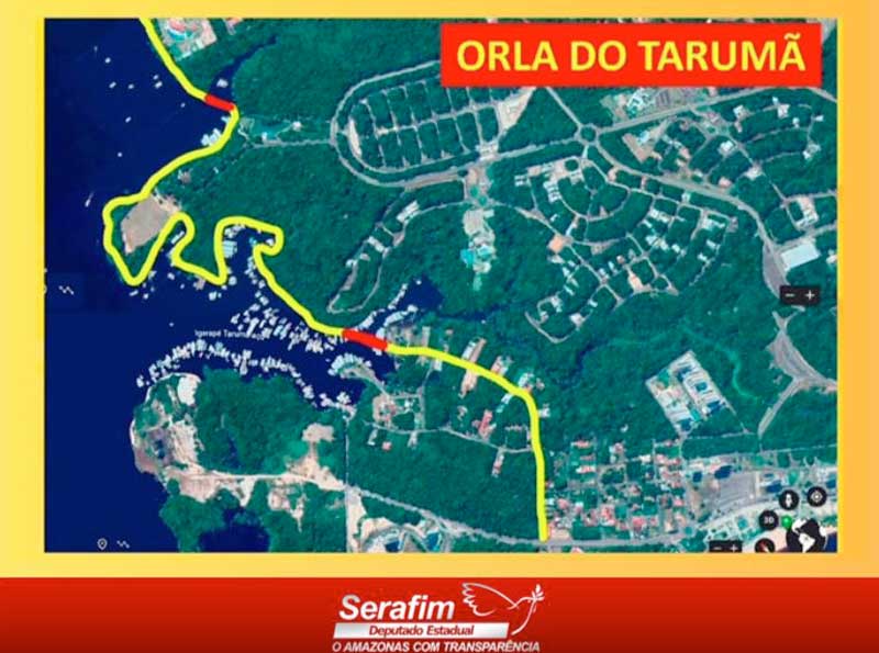 Serafim Corrêa sugeriu ao governo do estado e à prefeitura de Manaus que entrem em entendimento para dar continuidade à obra de revitalização da Orla do Tarumã para mais uma opção de lazer, já que hoje, o entretenimento está concentrado apenas nos flutuantes.