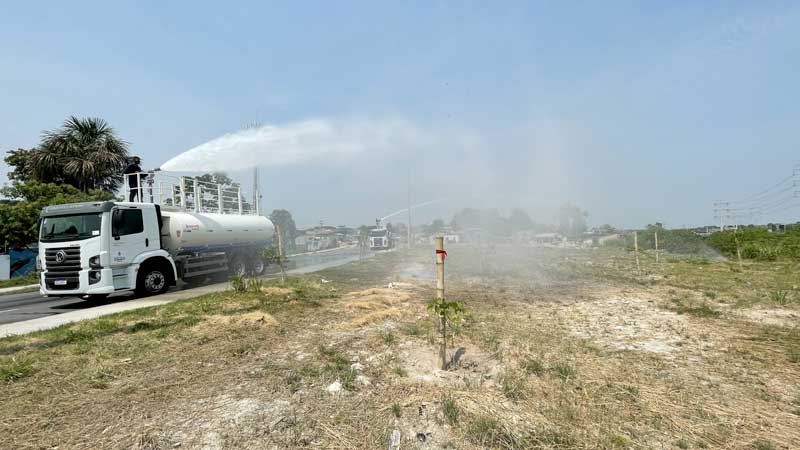 “Esses caminhões atuarão em dois turnos, sendo um pela manhã e outro ao fim da tarde e noite, tendo em vista que são os horários mais recomendados para a rega. A chegada desses veículos foi muito importante, principalmente por estarmos no início do período de estiagem, o chamado verão amazônico”, disse Stroski.