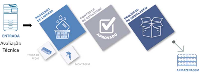 A equipe do laboratório é altamente qualificada e dedicada exclusivamente para essa atividade. Eles preparam as máquinas de acordo com os mais rígidos processos de qualidade, o que garante o sucesso da iniciativa. Os equipamentos voltam ao mercado seminovos e ainda no modelo de outsourcing onde toda a garantia e responsabilidade continua sendo da Simpress.