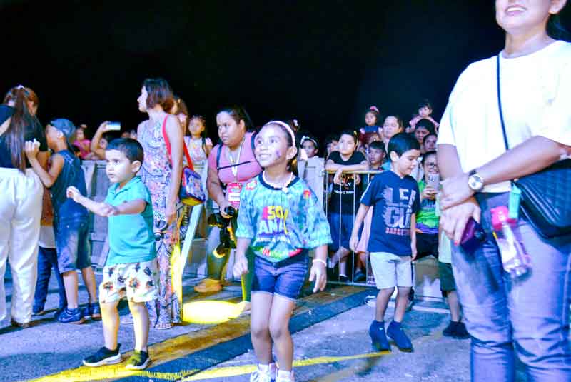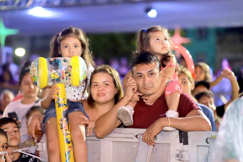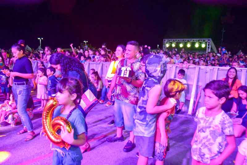 Centenas de crianças chegaram cedinho para ver a atração nacional e nem o anúncio de chuva afastou os pequenos do palco, onde se apresentaram os personagens Bita, Lila, Dan e Tito, cantando e encantando o público infantil.