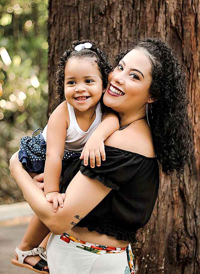 Passada essa luta, ela agora ela comemora a vida da filha. “Ser mãe tem o bônus e o ônus, eu não romantizo a maternidade, mas é mágico mesmo, eu amo ser mãe da Catarina.”