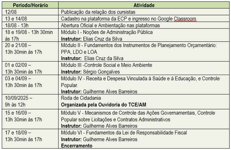 O Tribunal de Contas do Amazonas (TCE-AM), por meio da Escola de Contas Públicas (ECP), prorrogou até o dia 7 de agosto as inscrições para a edição 2025 do Programa de Formação de Agentes de Controle Social (Profac).