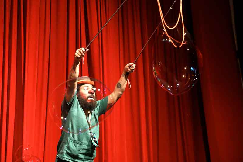 O menino Thomaz Teixeira, de apenas 7 anos, estava fascinado, vibrando durante toda a apresentação do Palhaço Feupuudo. “Eu achei ótimo, eu adorei aquelas bolhas de sabão grandes e aquela máquina que soltou muitas bolinhas pelo teatro”, explicou Thomaz.