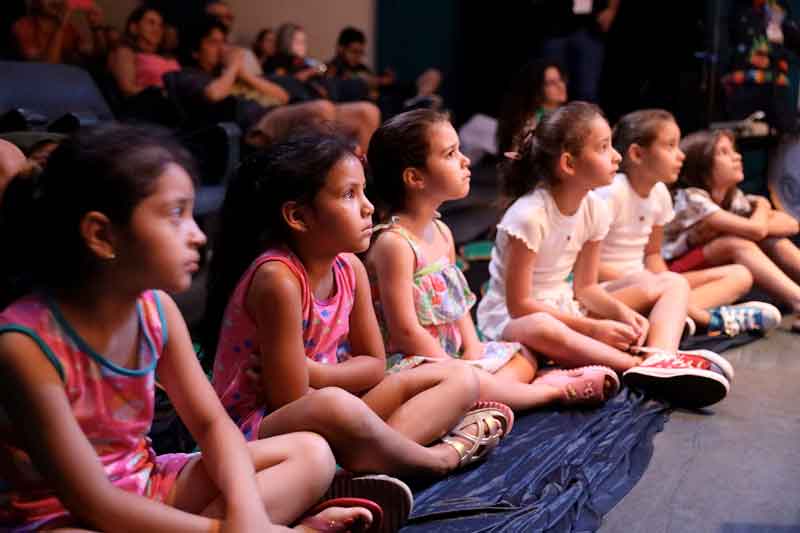 Em sua capacidade máxima de ocupação, o Teatro da Instalação proporcionou apresentações intimistas e interativas, recebendo o encantamento e aprovação do público.