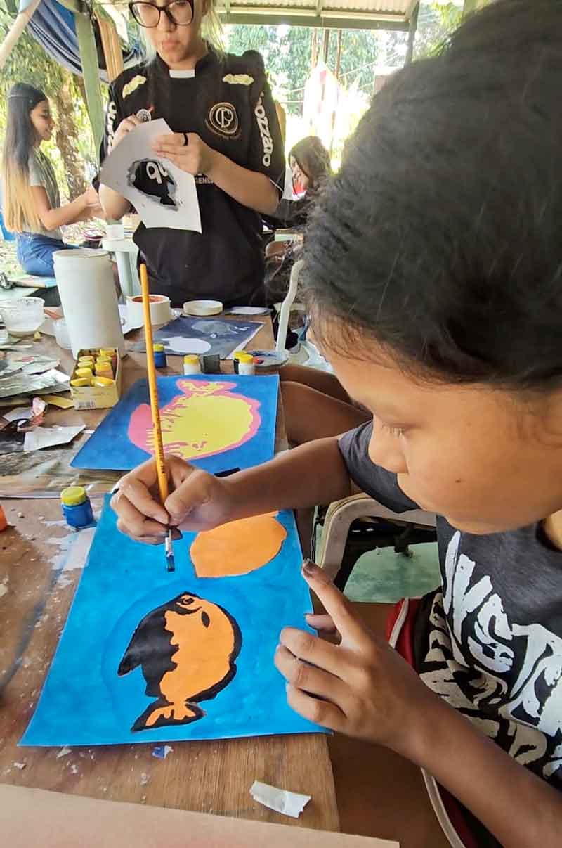 São reproduções de dezenas de peixes produzidos a partir de várias técnicas, como escultura em isopor, papel marché, pintura tinta guache, acrílica e areia, stencil e grafite, sob a supervisão do professor mestre Paulo Simonetti e monitores do projeto de extensão “RDS Tupé: Oficina de Artes”, da Faculdade de Artes da Universidade Federal do Amazonas (Ufam).