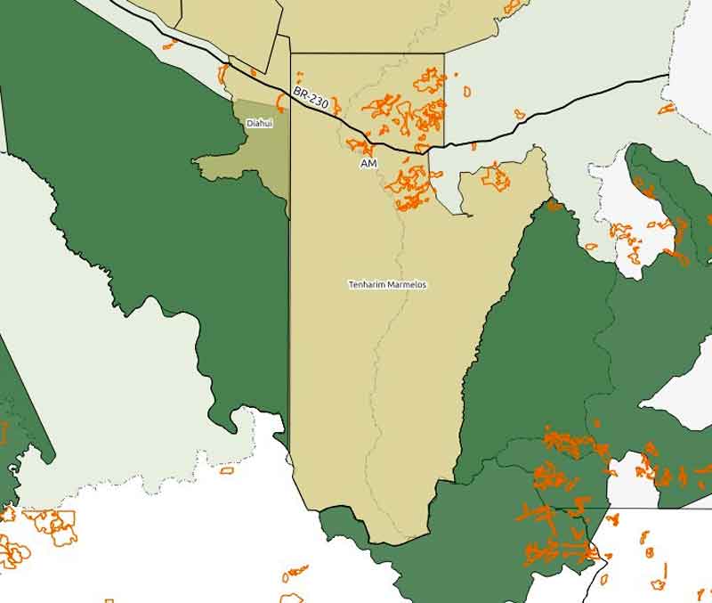 A situação da TI Jacareúba-Katawixi é preocupante, porque se trata do território dos Isolados do Katawixi, povo que provavelmente pertence à família linguística Katukina, e cujo processo de homologação se arrasta há 17 anos com sucessivas renovações da Portaria de Restrição de Uso (a última aconteceu em fevereiro de 2023). A TI tem a maior parte da sua área sobreposta a duas UCs, o Parna Mapinguari e a Reserva Extrativista (Resex) Ituxí, que também estão entre os municípios de Lábrea e Canutama.