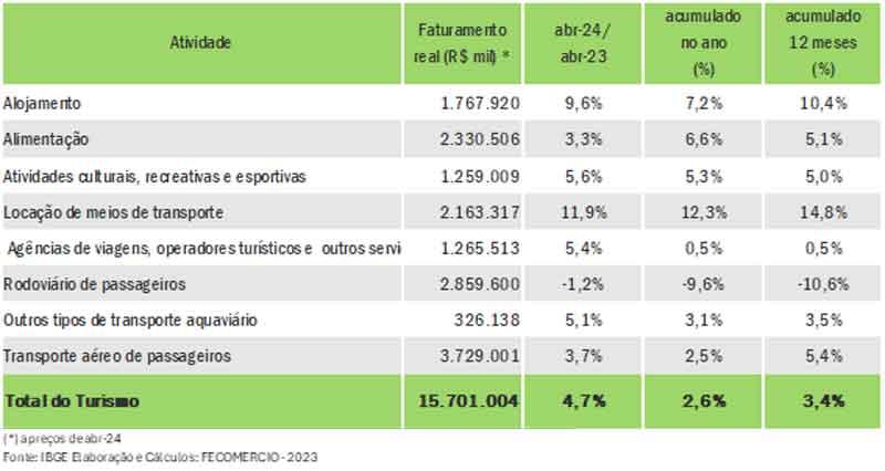 FATURAMENTO DO TURISMO NACIONAL POR SERVIÇOS PRESTADOS | Abril de 2024