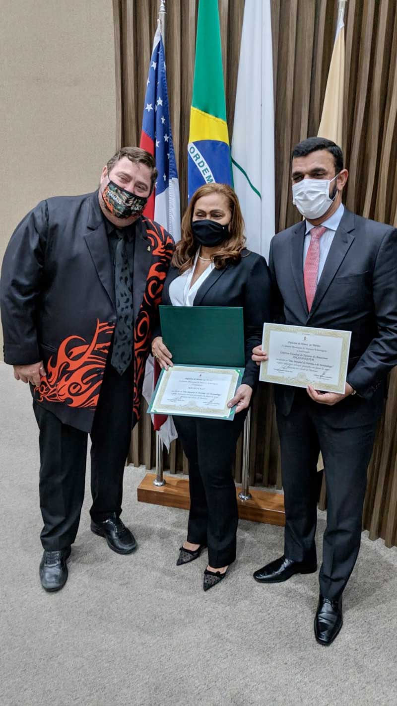 Após a Medalha de Ouro, William Alemão entregou o diploma de Honra ao Mérito aos turismólogos Oreni Braga, Sérgio Litaiff Filho e Roberto Conhago.