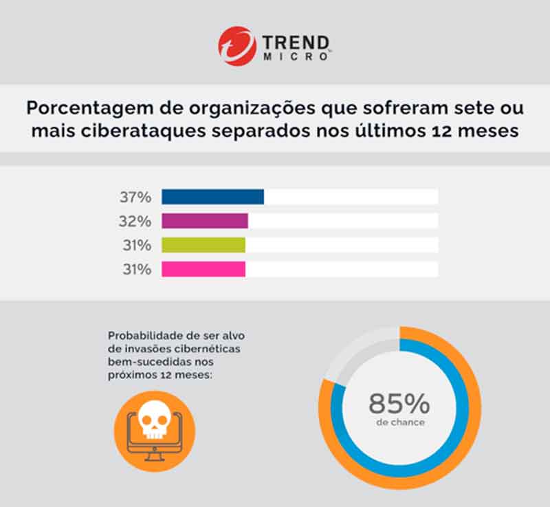 Essa tendência também se reflete em outros dados: mais de um terço das organizações teve sete ou mais ataques cibernéticos nos últimos 12 meses e o número de empresas que sofreram uma invasão “bem-sucedida” aumentou de 84% para 90% no mesmo período. Desta forma, o comprometimento esperado para o próximo ano também mudou passando de 76% para 85%.