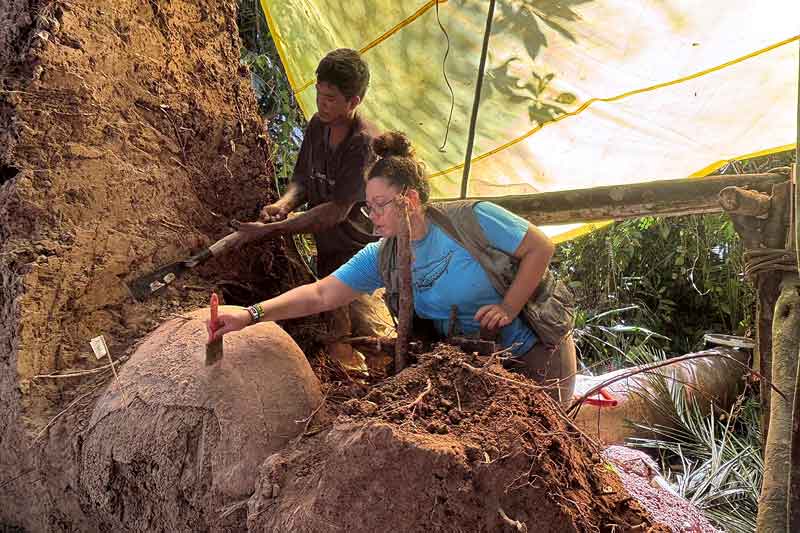 Devido ao espaço e condições que as urnas foram encontradas, as escavações tiveram que ser realizadas em uma estrutura elevada, construída com madeira e cipós pelas próprias comunidades locais.