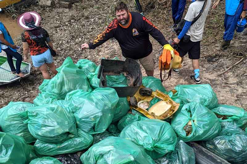 Durante a ação, foram retiradas toneladas de lixo do igarapé do gigante