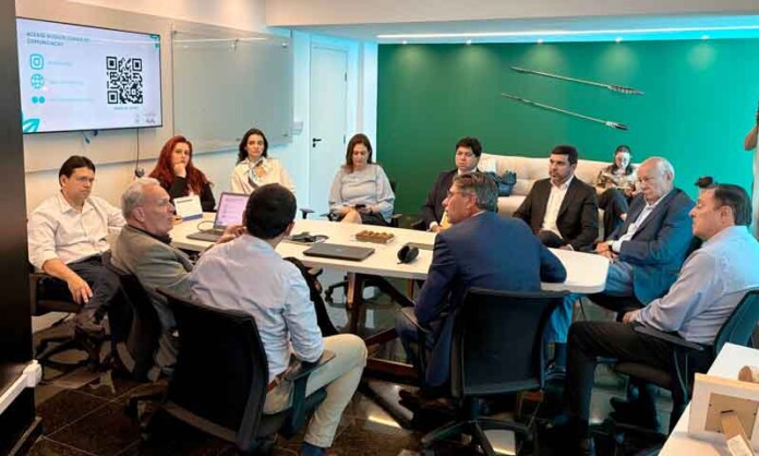 Participaram da reunião o presidente da Eletros, Jorge Junior, o diretor do Centro de Incubação e Desenvolvimento Empresarial (CIDE), Salomão Yuri Costa, e a chefe de gabinete corporativo do Sistema FIEAM, Renée Veiga.