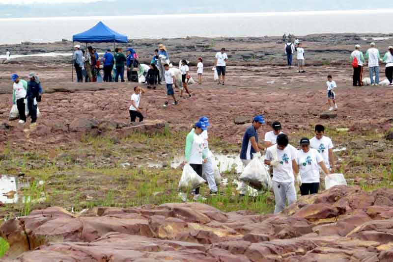 Aproximadamente 300 voluntários participaram do mutirão de coleta de resíduos sólidos na praia e sítio arqueológico Ponta das Lajes, e recolheram 2,5 toneladas de material. A ação foi realizada pelo Instituto Soka Amazônia e pelo Instituto do Patrimônio Histórico e Artístico Nacional (Iphan/AM) como forma de sensibilizar e conscientizar a sociedade para a proteção dos rios e valorização dos patrimônios naturais e culturais da Amazônia.
