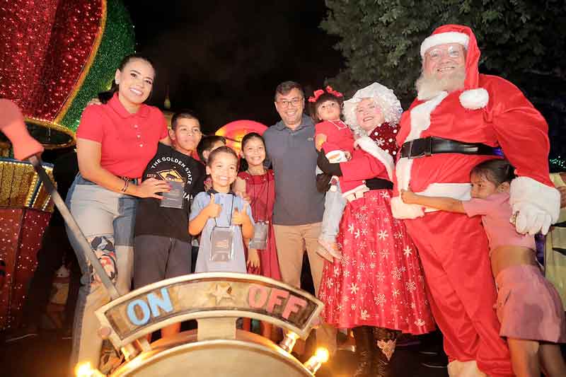 Ao lado da primeira-dama do Amazonas, Taiana Lima, e da filha caçula, Maria Antonella, Wilson Lima acionou as luzes de toda a decoração montada no local. A programação incluiu cenografia inédita, chegada do Papai Noel e abertura dos espaços culturais com atrações gratuitas.