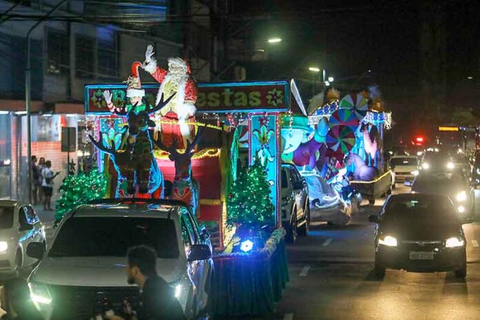 Como parte da programação do “Natal dos Sonhos – É hora de sonhar, compartilhar e concretizar”, a Prefeitura de Manaus, através do Fundo Manaus Solidário (FMS), promoveu a última “Caravana Natalina” neste sábado 21/12. O desfile dos carros alegóricos personalizados percorreu avenidas e ruas, encantando os habitantes de diversos bairros da zona sul da cidade.